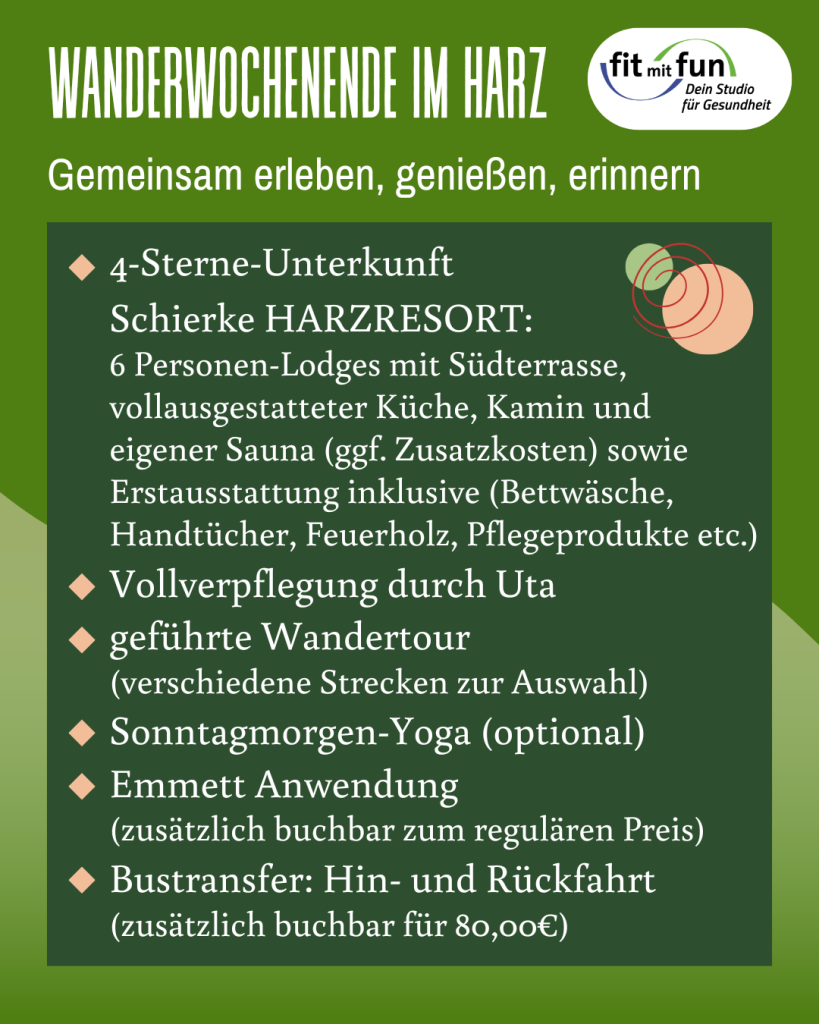 Ein Wochenende voller Natur, Gemeinschaft und aktiver Erholung: Beim Jubiläumsevent im Harz nehmen wir uns Zeit, bewusst unterwegs zu sein. Gemeinsam wandern, Erinnerungen teilen und neue Eindrücke sammeln – ideal für Körper und Seele.
