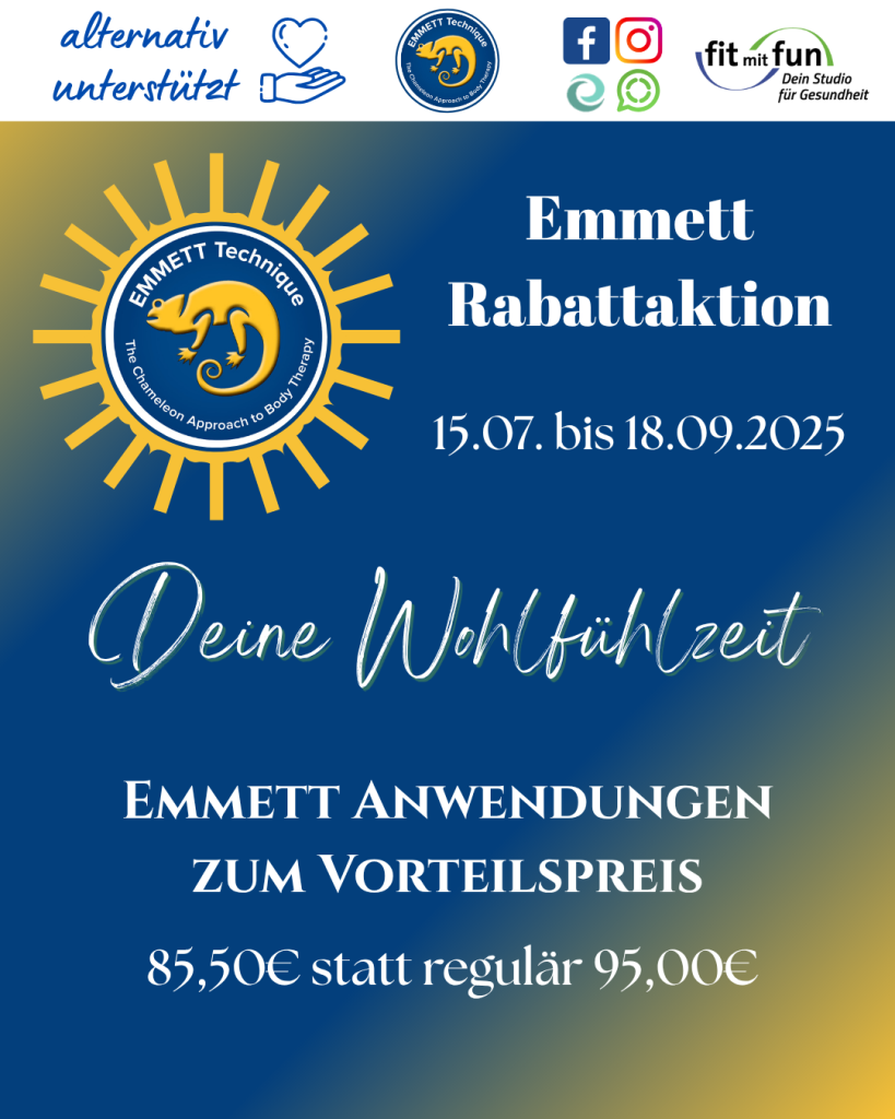 - Emmett Schwerpunkt-Anwendungen (Füße, Lymphe, Rücken, Schulter/Nacken)